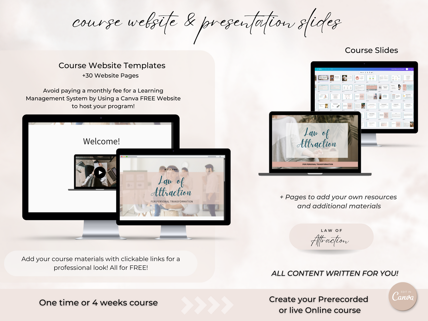 Engage your audience with visually appealing slides and host your program on a FREE Canva website as a landing page, no costly learning management system required!