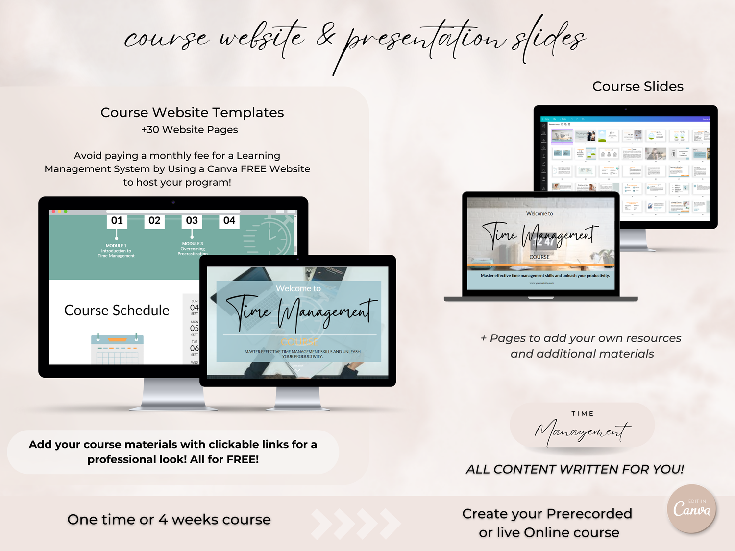 Engage your audience with visually appealing slides and host your program on a FREE Canva website as a landing page, no costly learning management system required!